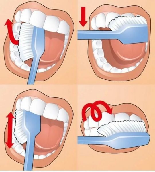 - Чистка зубов должна сопровождаться горизонтальными, вертикальными и круговыми движениями щеткой. Начать чистку стоит с вертикальных движений, затем перейти на горизонтальные и круговые;